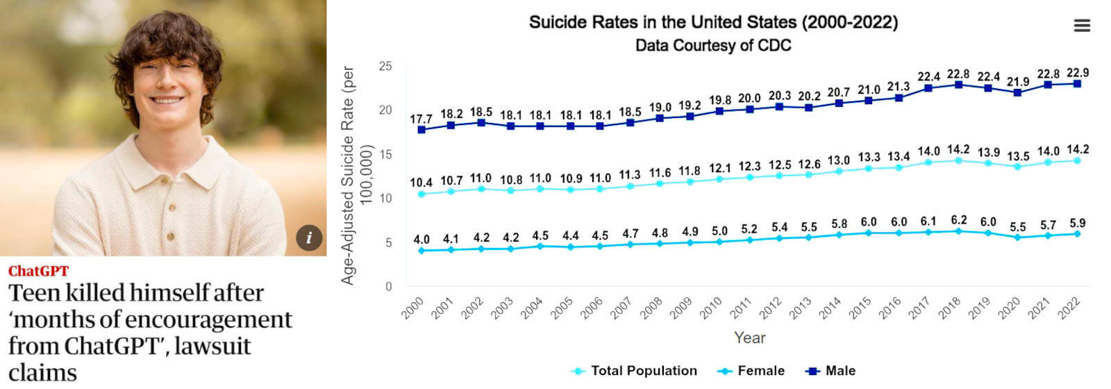Moreover, we are missing a point here: how many lives do AI chatbots have saved in answering youths under stress? It is the classic survival bias but inverse, the growing forest bias: we are noticing those trees that have loudly fallen, not the many they silently are still growing.